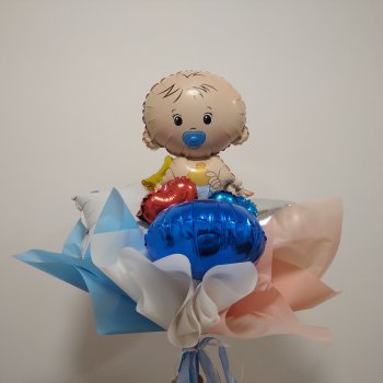 Вартість 250 грн. Розмір 60см Х 40см Букет з фольгованих кульок на виписку новонародженого з пологового будинку